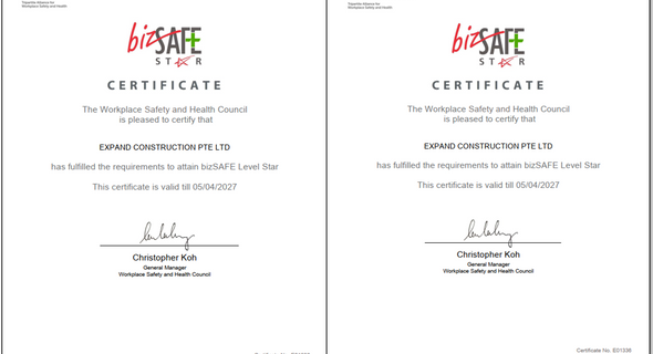 EXPAND is certified BizSAFE Partner as our company or organisation supports the WSHC Council’s programme by providing business advantages to motivate SMEs to join bizSAFE and improve workplace safety and health. These include larger companies that are engaging SMEs as contractors or subcontractors. |